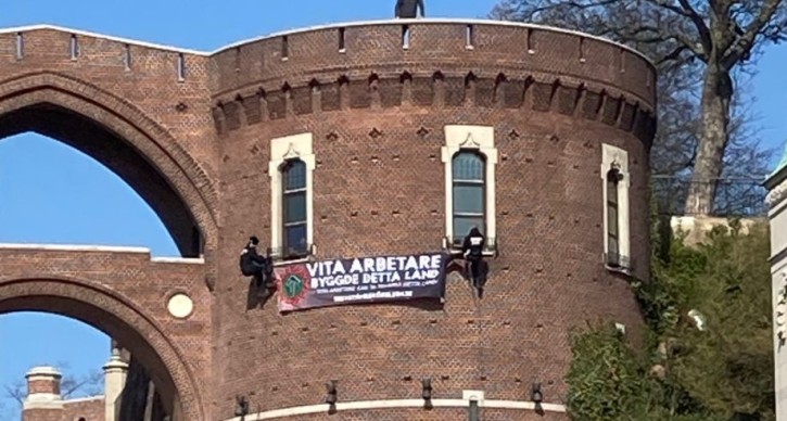 Rykande färskt är också en repelleringsaktion i Näste 3, där man fäst en banderoll på en borg i Helsingborg.